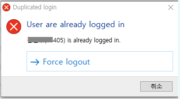 1. 重複ログインの場合、「Force logout(強制ログアウト)」を1~2回試みるとログアウトされ、再度ログインできます。