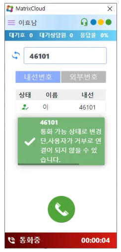 기존 상담원 상태가 “대기” 중인지 여부를 체크 했으나 이번 업데이트로 인해 대기 상태가 아니더라도 강제로 대기 상태로 변경 후 호전환을 시도