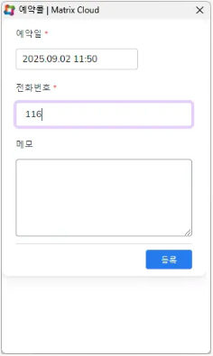 - 예약일과 전화번호는 필수 입력. 미입력 시 등록 불가.